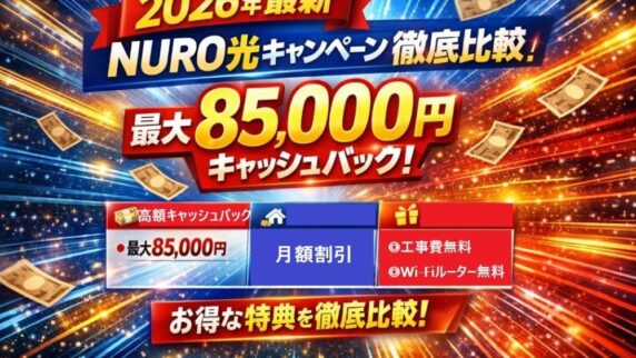 NURO光 【2026年最新】NURO光キャンペーン徹底比較!最大85,000円キャッシュバック NURO光の最新キャンペーン情報を詳しく解説し、読者がご自身の住居形態やニーズに最適なキャンペーンを選択できるようサポートします。 2025.06.13 NURO光