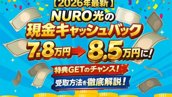 NURO光 【2026年最新】NURO光の現金キャッシュバックが7.8万円→最大8.5万円に!受取方法も解説 NURO光の現金キャッシュバックが7.8万円から最大8.5万円に!特設サイト経由の申込で限定特典を現金で受け取れるチャンス!キャンペーン内容と受け取る方法を解説します。 2024.10.02 NURO光