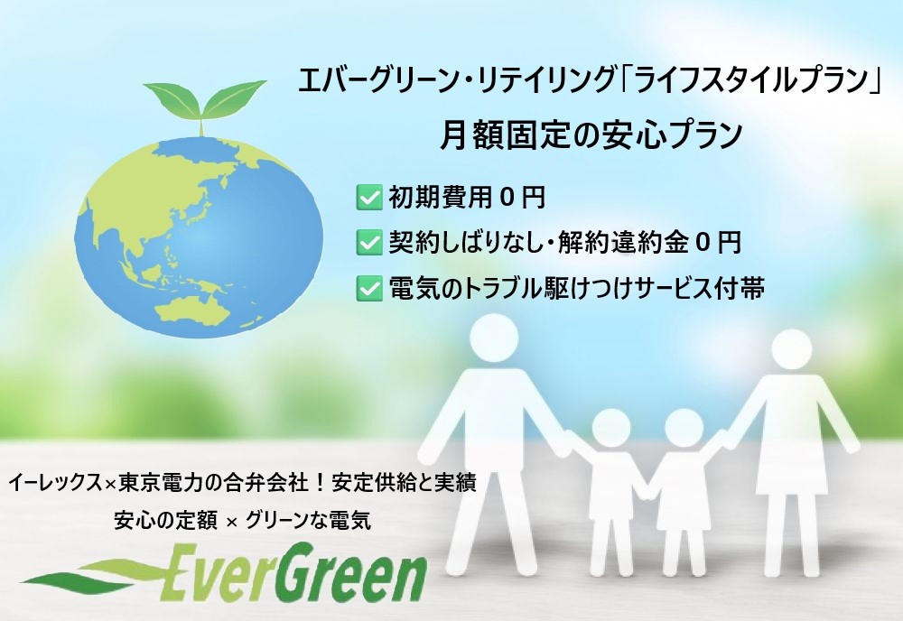 エバーグリーン・リテイリング「ライフスタイルプラン」は、毎月の電力使用量に合わせた5つの定額プランから選べる、今の時代にフィットした新しい電気料金プランです。