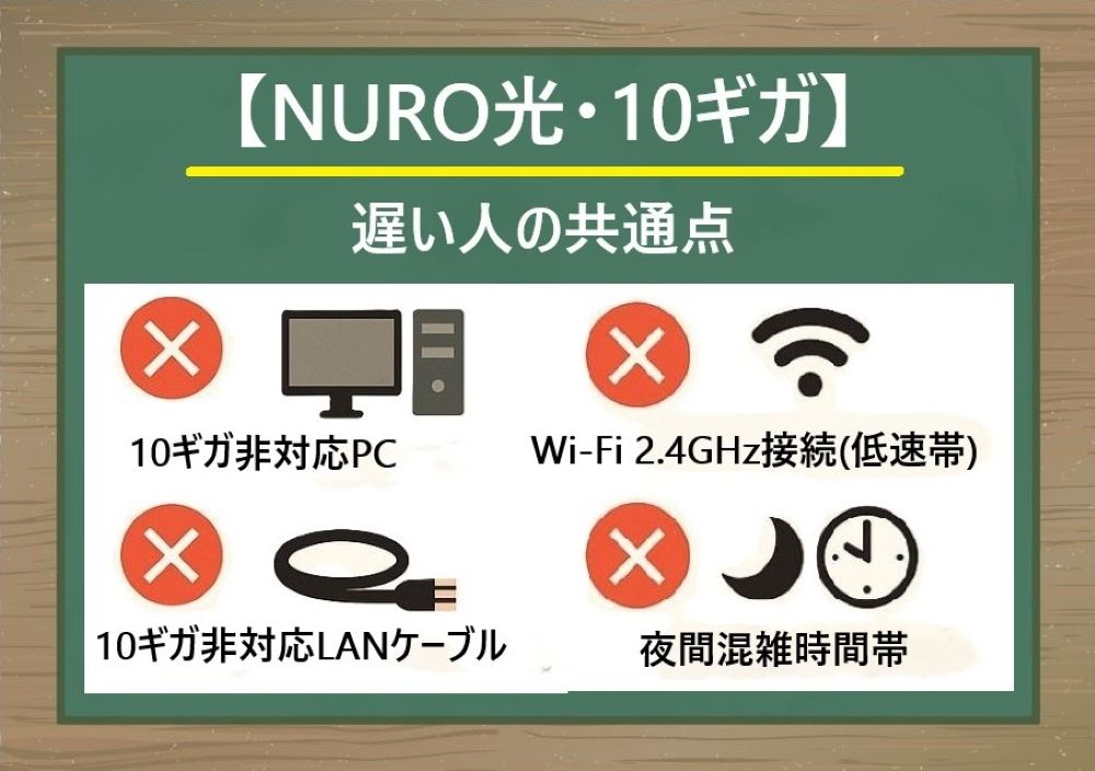 PC・スマホのスペック:10GbEポートまたはLANカードで最大性能にしましょう。スマホ中心のユーザーはNURO光10ギガのポテンシャルを活かしきれない点に注意が必要です。