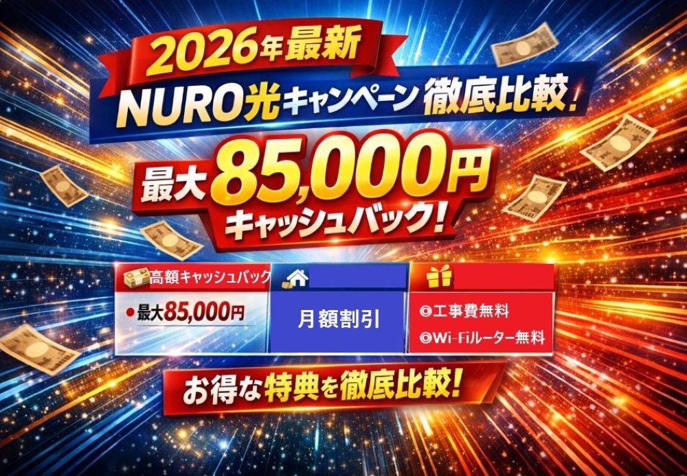 2026年現在、NURO光では公式特設サイトから申し込み限定で、最大85,000円キャッシュバックが実施中です。