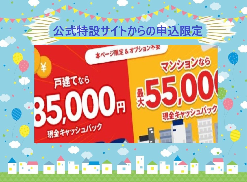 最大85,000円キャッシュバックは、断然お得なキャッシュバックキャンペーン・特典です。(※マンションの場合はこちら)