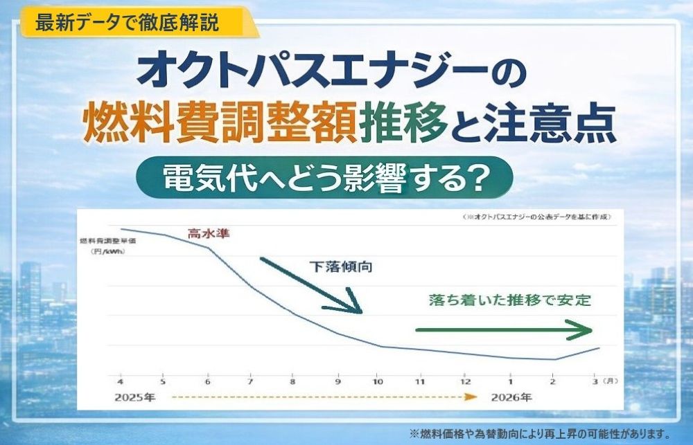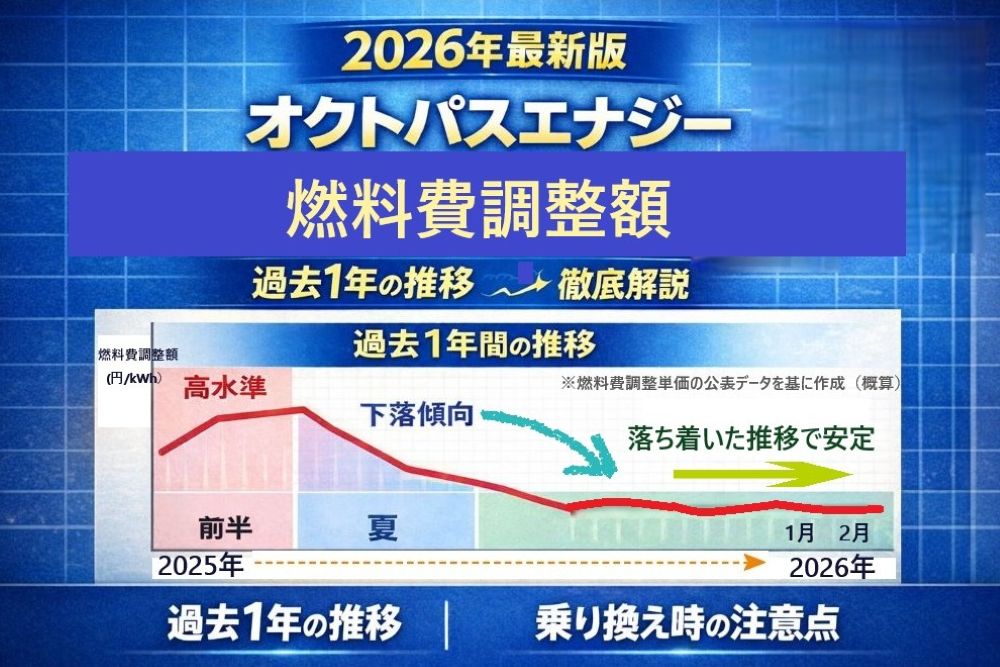 本記事では、以下のポイントをオクトパスエナジーの燃料費調整額の推移をもとに解説します。乗り換えを検討中の方は、ぜひ本記事をお役立てください。