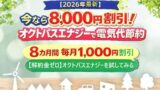 こちらのページからオクトパスエナジー新規契約の方は、「サイトdeオクトパス割Ver.2」総額8,000円(税込)の電気代割引が適用されます。