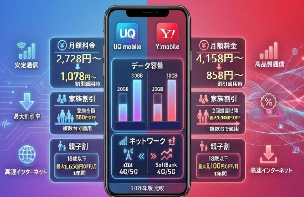 UQモバイルとワイモバイル比較!2026年どちらがお得?